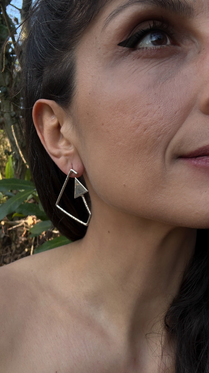 Triangle silver earring crafted from quality silver, featuring a sleek geometric design. The minimalist silhouette adds modern elegance to any look, perfect for everyday wear or special occasions.