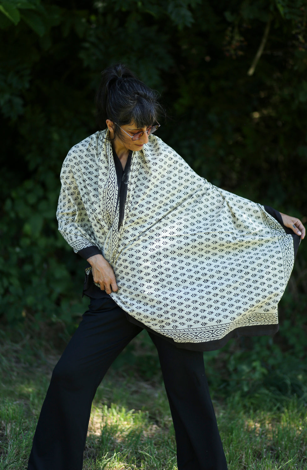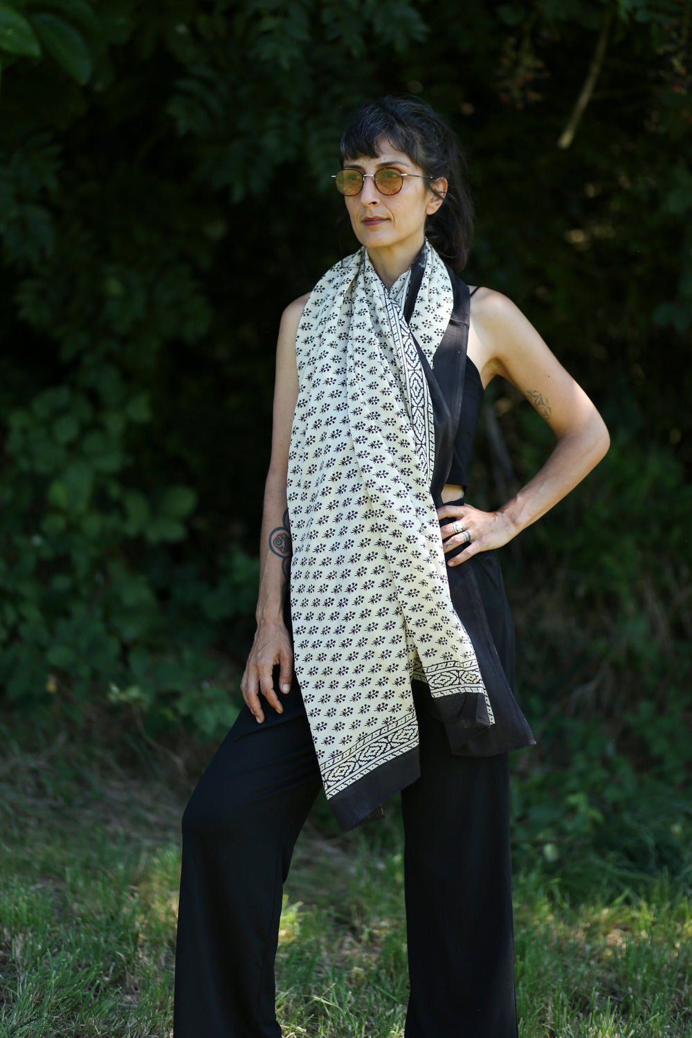 Wrap it around your belly, use it as a skirt or a turban, and drape it to warm your shoulders – our versatile scarf adapts to your style.