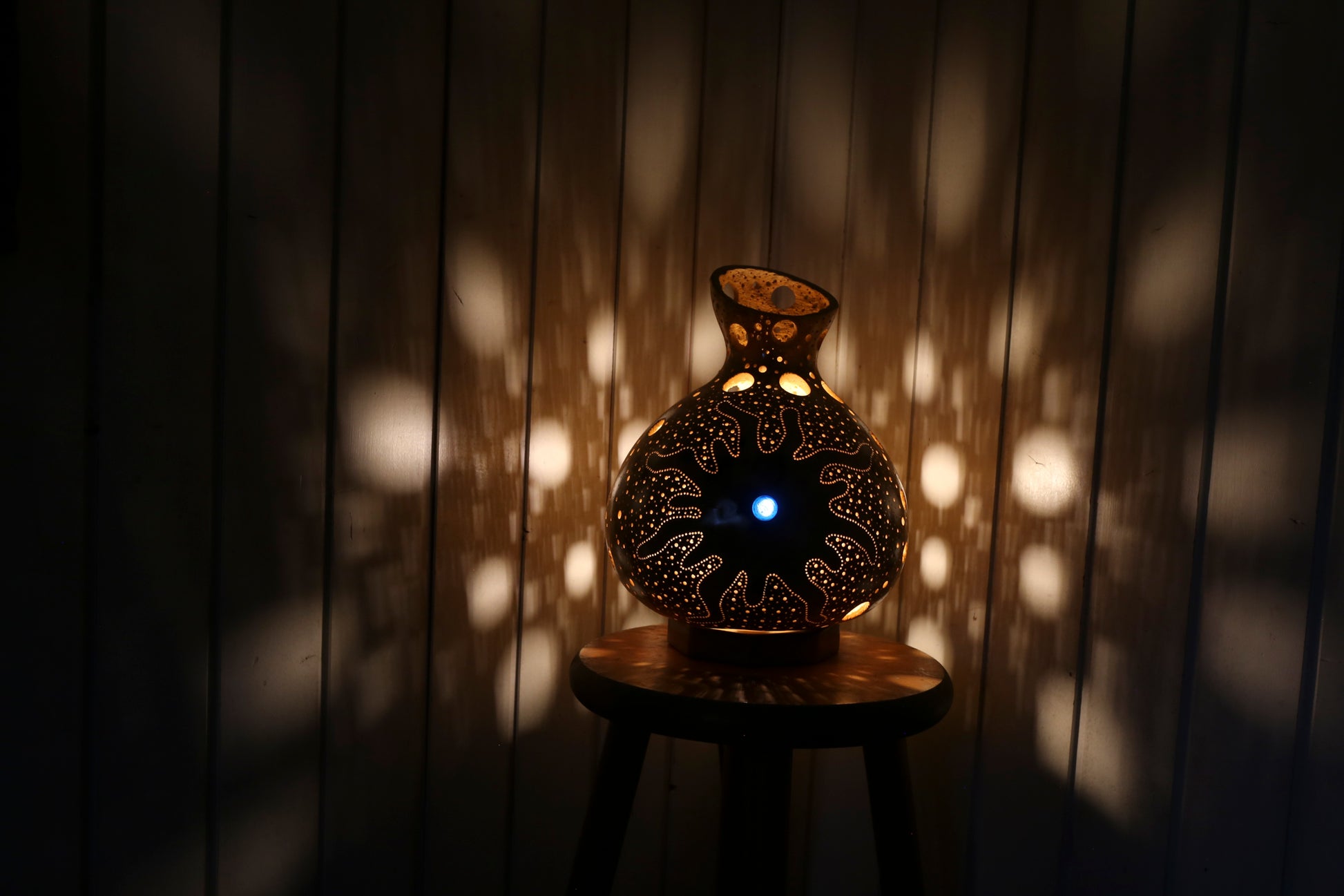 Each piece is individually made from responsibly harvested gourds, creating a soft, calming glow that enhances your home's atmosphere.