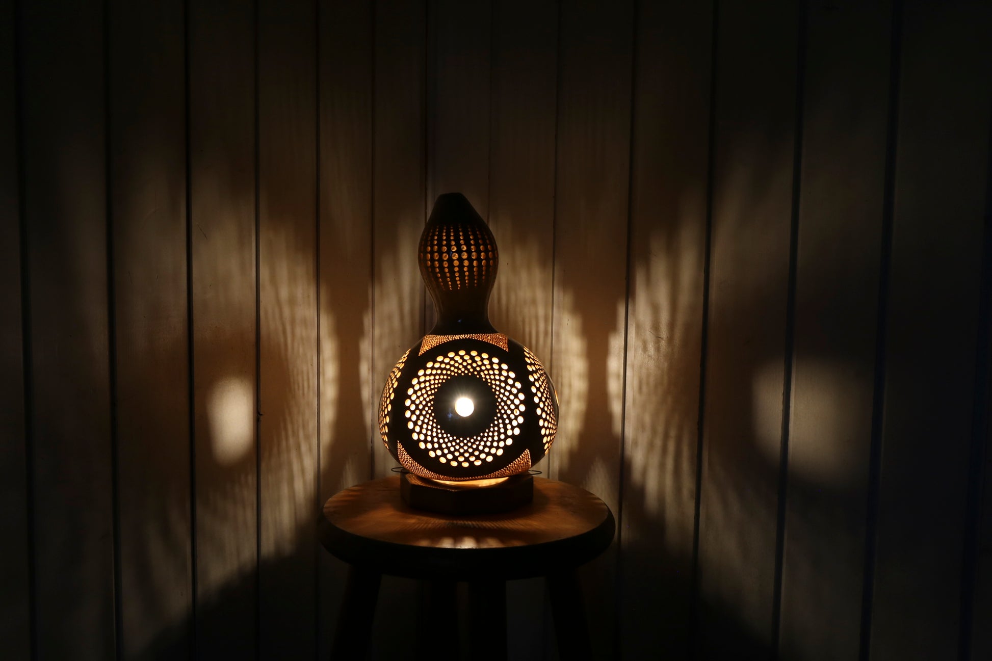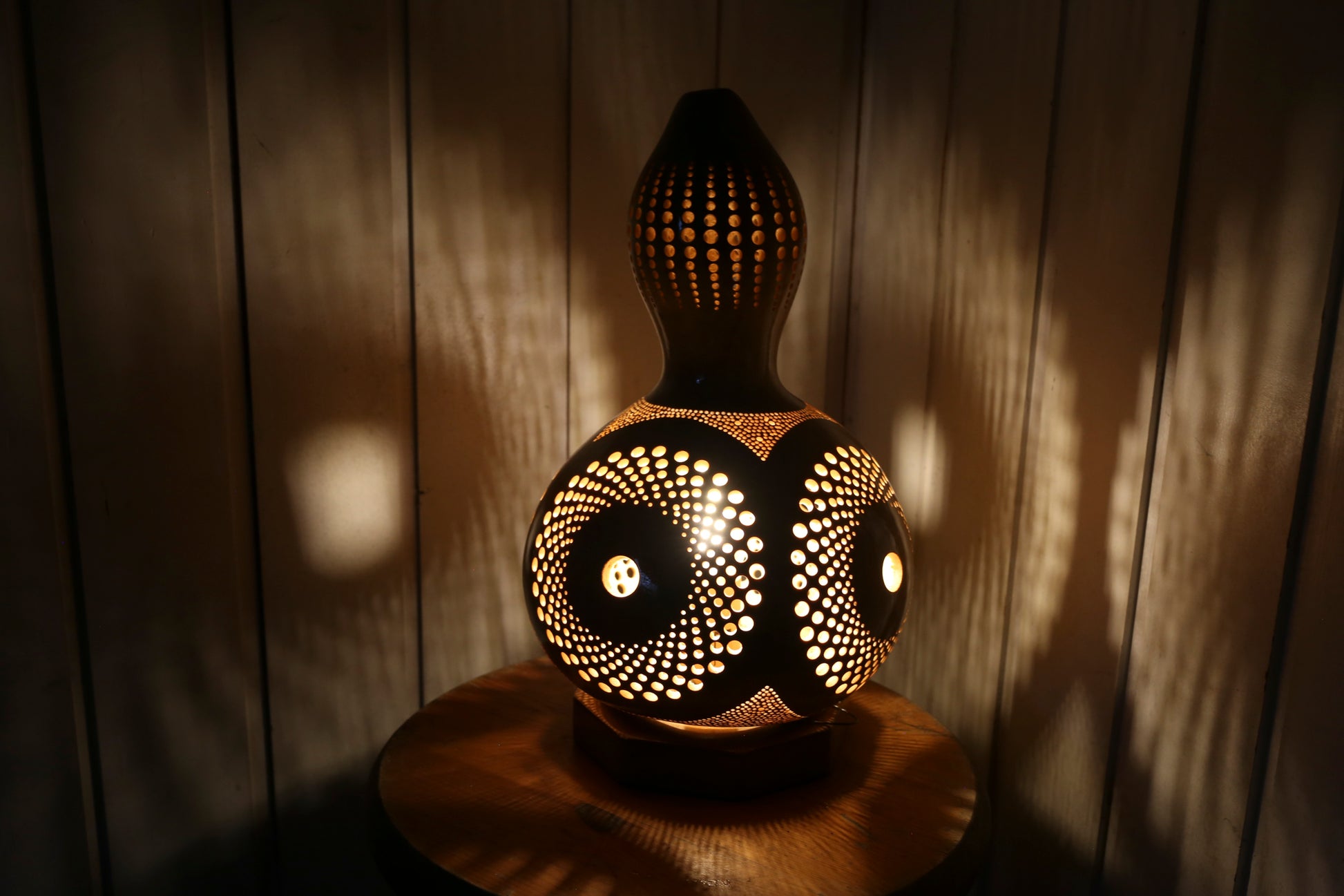 This distinctive gourd lamp brings natural beauty and soft illumination to any environment.