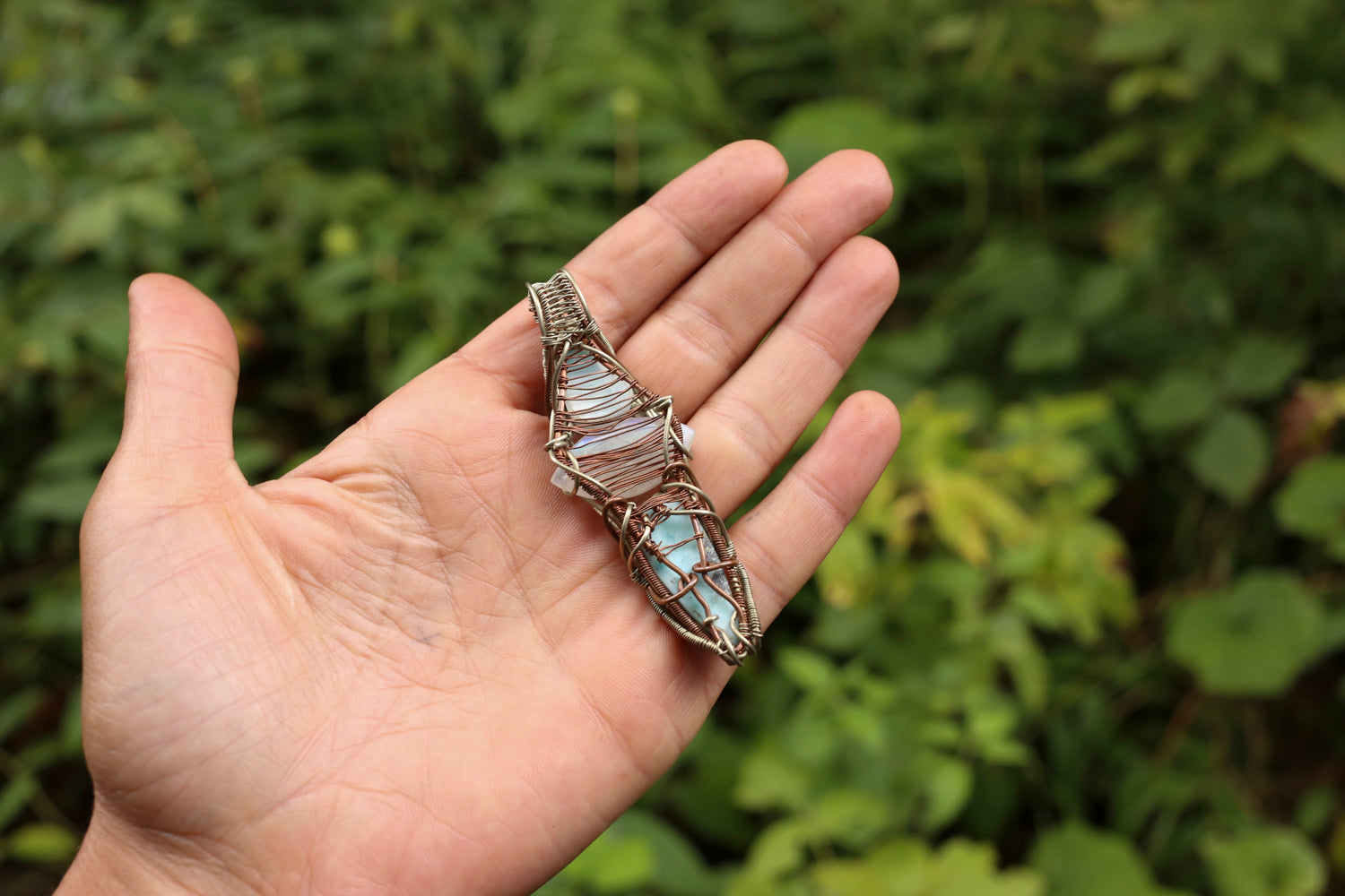Every pendant is skillfully crafted by Turkish artisan Zehra Keskin, who utilizes age-old wiring methods to create each unique piece.