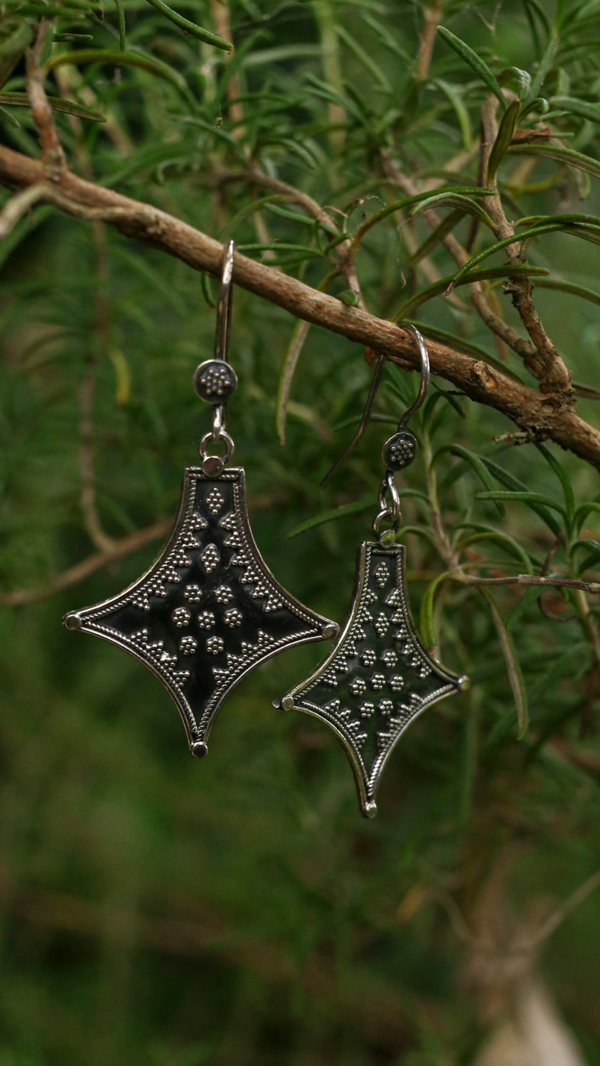 Discover the enduring charm of Rajasthan through our meticulously handcrafted silver dot work earrings.