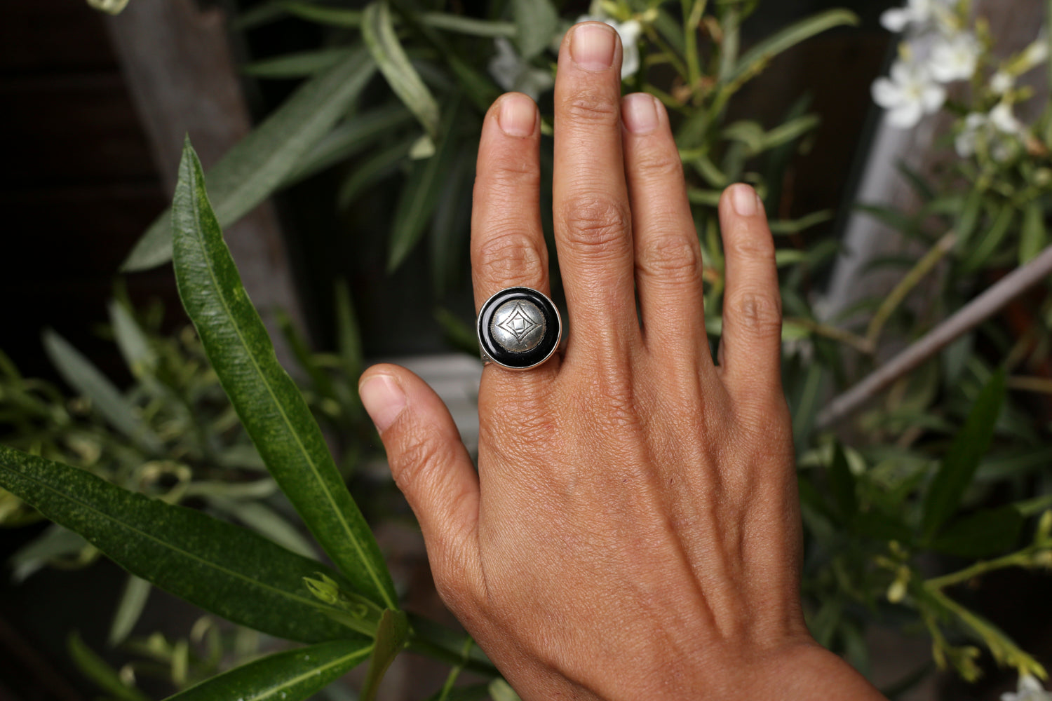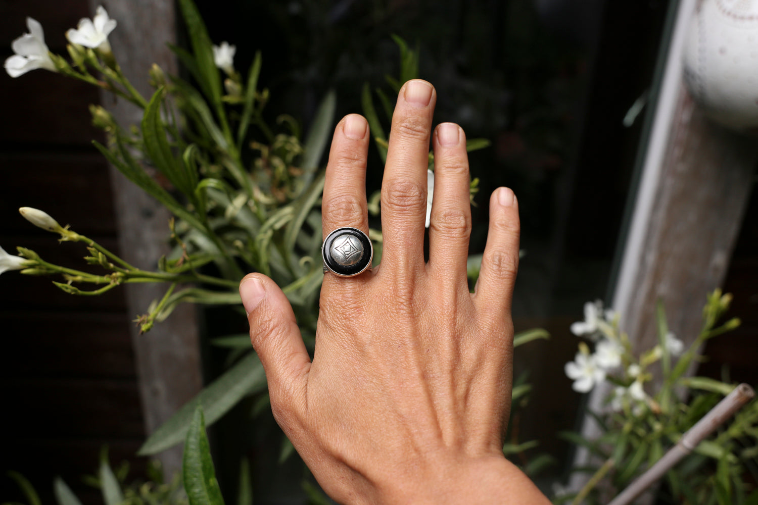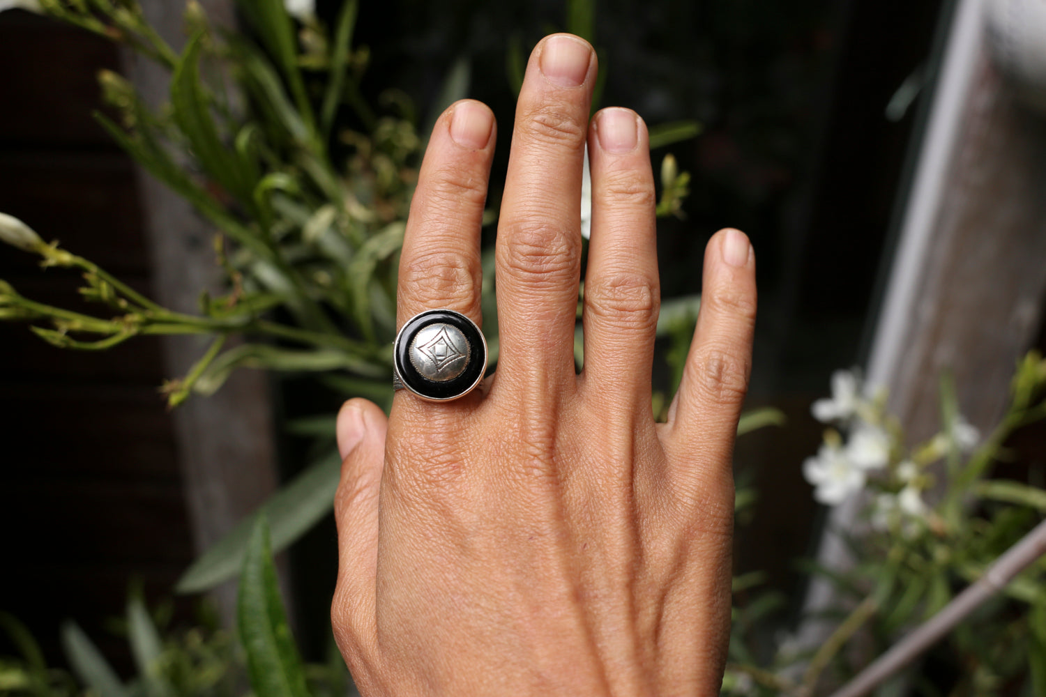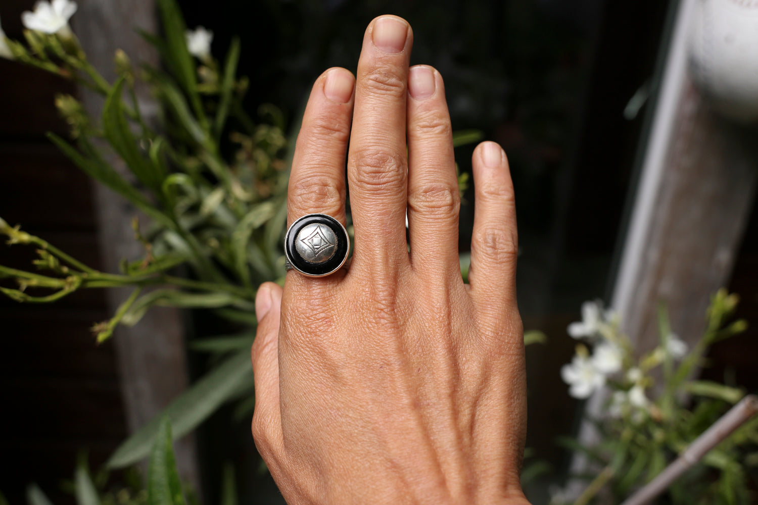 This unique silver and ebony ring is handcrafted by skilled artisans in Niger, blending powerful Onyx stone with the timeless shine of sterling silver. Each piece tells a story of tradition, craftsmanship, and cultural heritage.