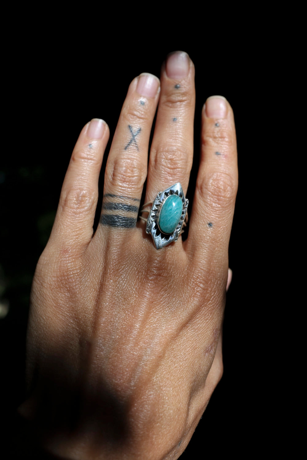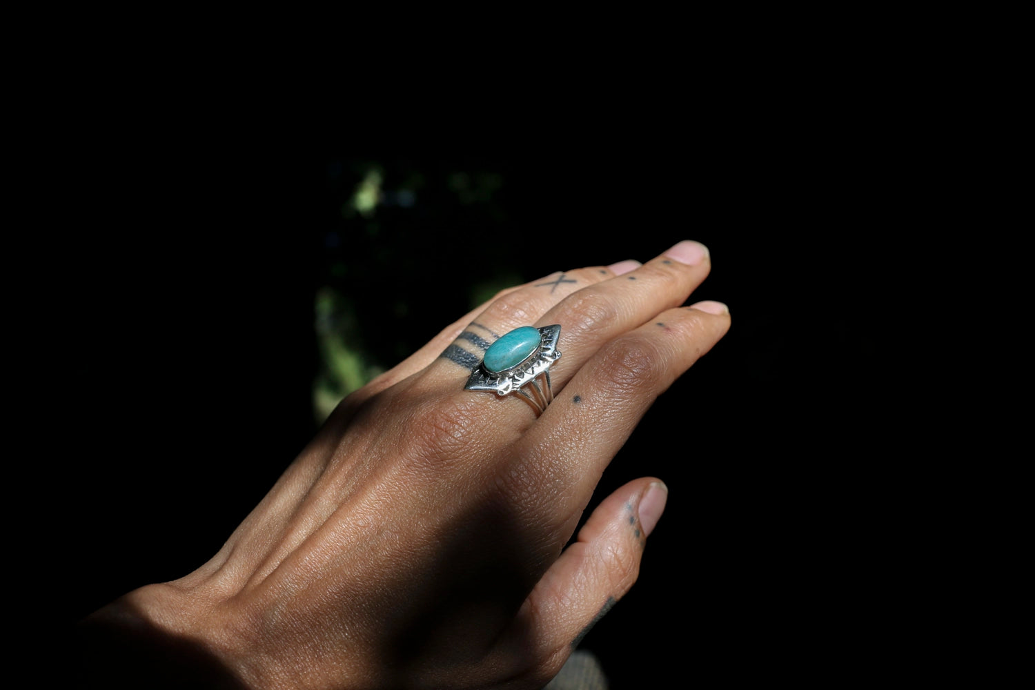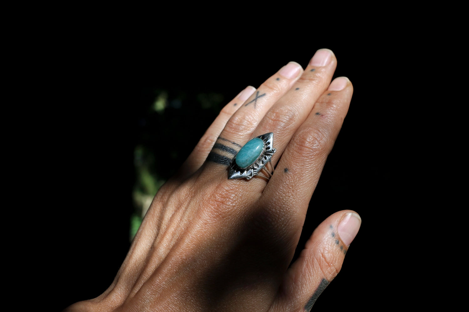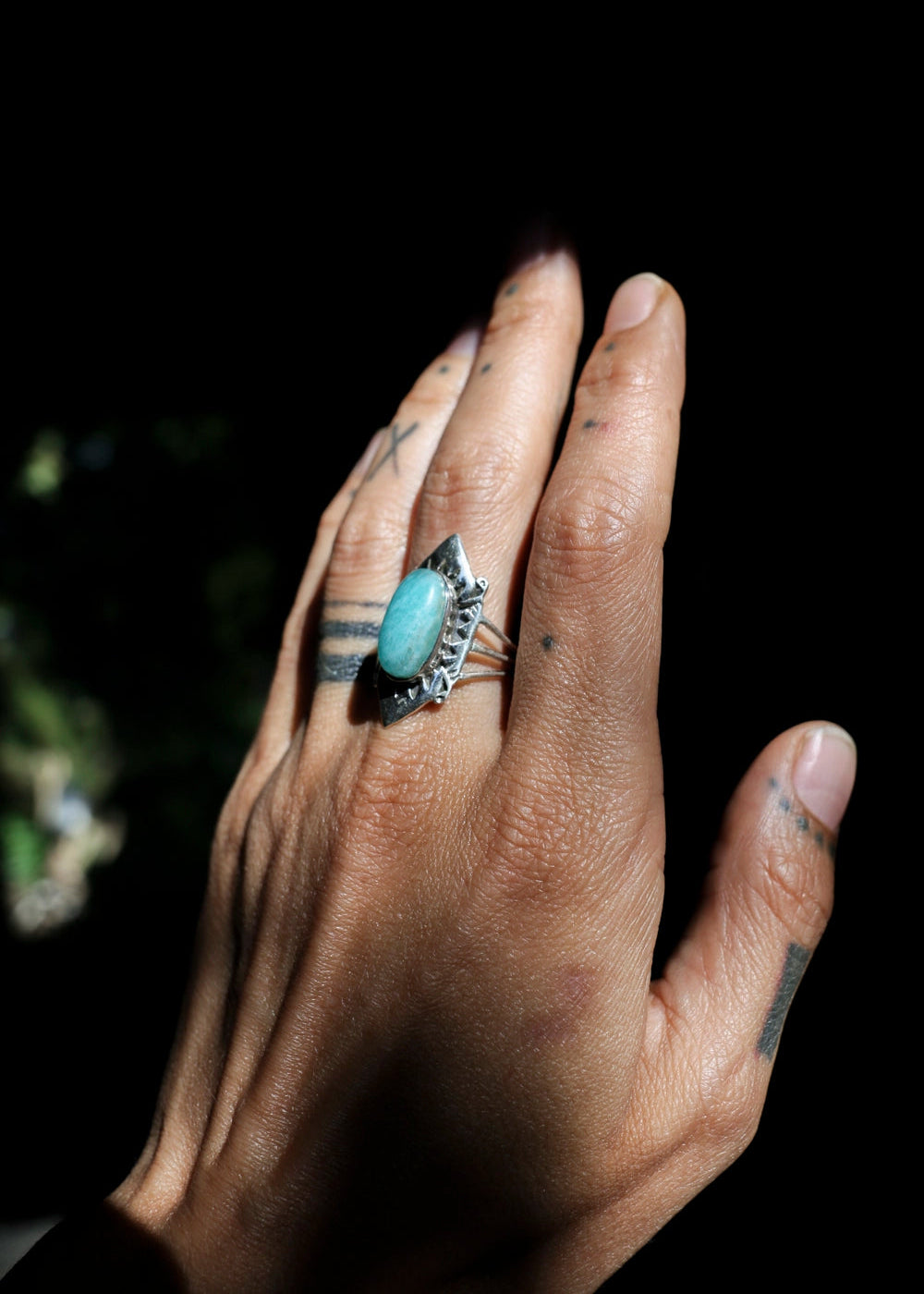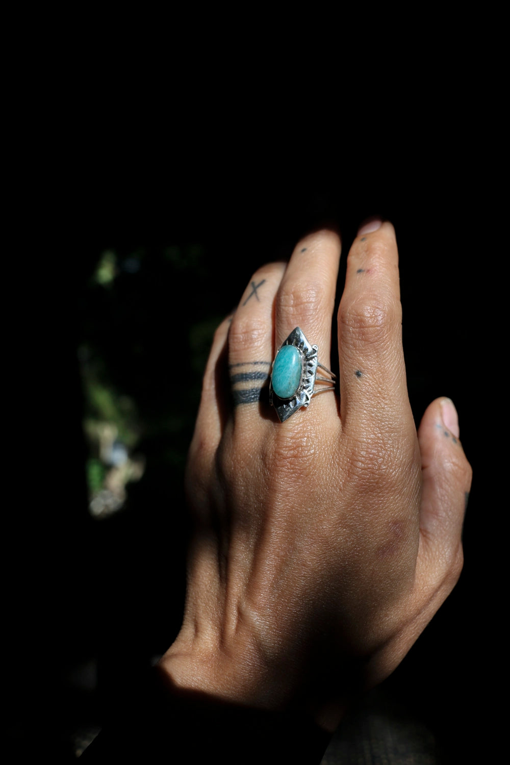 Discover the serene beauty of our handcrafted silver ring featuring a stunning aquamarine stone.