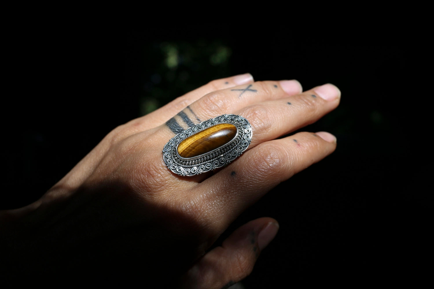 Make a statement with our captivating tiger eye stone ring, featuring the unique golden-brown hues of this revered gemstone.