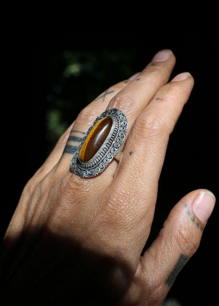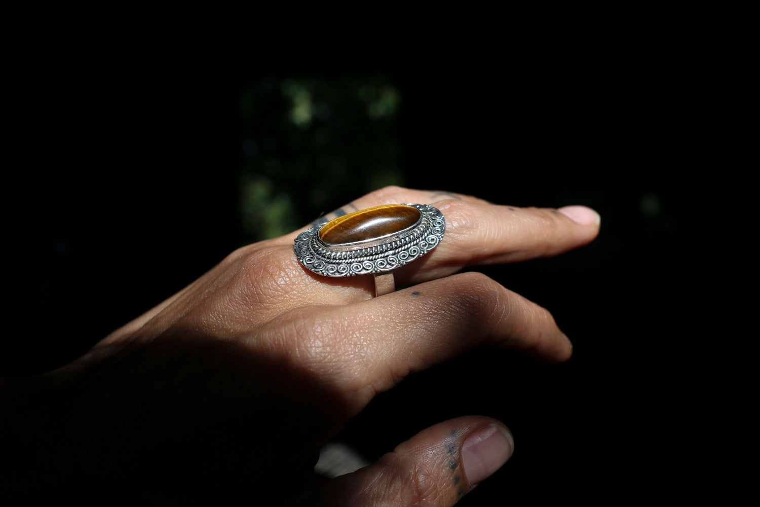 **Bold Tiger Eye Stone Ring – Protection, Confidence, and Focus**